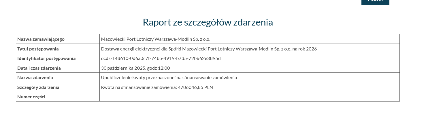 Dostawa energii elektrycznej dla Spółki Mazowiecki Port Lotniczy Warszawa-Modlin Sp. z o.o. na rok 2026
